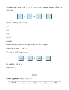 ố ở hình bên để đư c ợ so sánh đúng. H i ỏ Rô-b t ố không vi t ế s nào? ố A. 2 B. 3 C. 5 D. 250 L i ờ giải Ch n ọ ra 4 trong 5 s đã ố cho đ l ể p r ậ a 2 c p ặ s có t ố ích b ng ằ nhau.