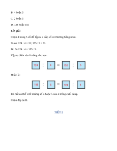 ố 2, 4, 5, 124, 155 vào các ô tr ng ố ở hình bên đ ể đư c ợ so sánh đúng. H i ỏ Rô-b t ố có th vi ể t ế nh ng ữ s nào vào ô t ố r ng cu ố i ố cùng? A. 2 hoặc 4 B. 4 ho c 5 ặ C. 2 ho c 5 ặ D. 124 hoặc 155 L i ờ giải Ch n ọ 4 trong 5 số đ l ể p r ậ a 2 c p ặ s có t ố hư ng b ơ ng ằ nhau.