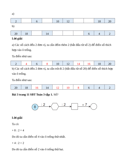Bài 2 trang 11 SBT Toán 3 t p 1 ậ : Số? a) 2 6 10 12 18 20 b) 20 18 14 6 4 2 L i ờ giải