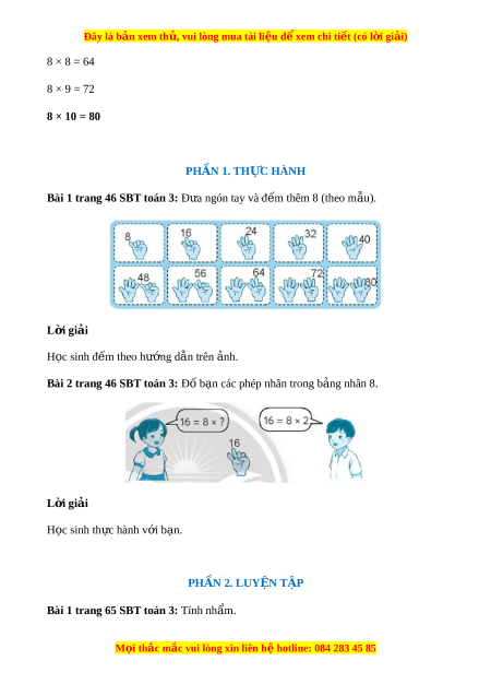 ệ đ ể xem chi ti t ế (có l i ờ gi i) ả 8 × 8 = 64 8 × 9 = 72 8 × 10 = 80 PHẦN 1. TH C Ự HÀNH