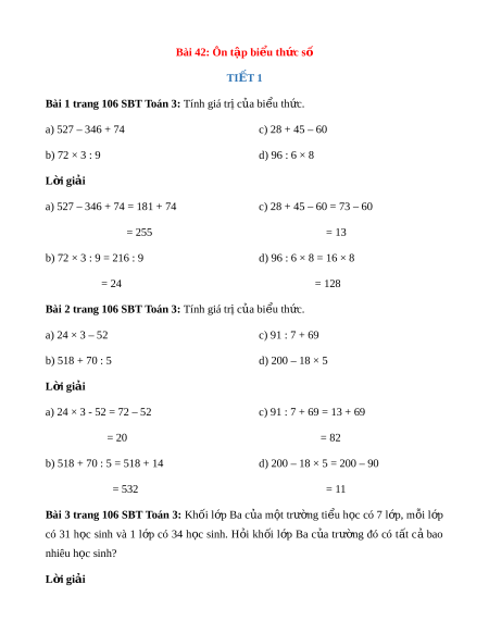 VBT Toán lớp 3 Bài 42 (Kết nối tri thức): Ôn tập biểu thức số