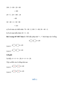 Ta thấy: 4 × 4 + 4 = 20; 4 + 4 × 4 = 20. V y ậ ta đi n vào ô t ề rống như sau: 4 4 4 20 Cách 1: 4 4 4 20 Cách 2: TI T Ế 2