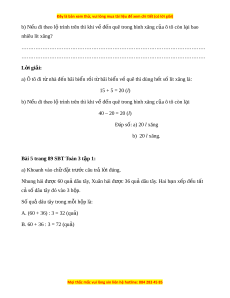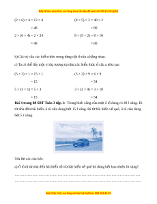 8 × (5 × 1) = ……………………. = …………………. = ……………………. b) Nh n xét ậ v gi ề á tr c ị a ủ các bi u t ể h c t ứ rong t ng c ừ t ộ câu a. ở c) L y ví ấ d t ụ ư ng ơ t nh ự các bi ư u ể th c ứ câu a. ở L i ờ giải - Khi tính giá tr c ị a ủ các bi u t ể h c có ứ d u ngo ấ c ặ ( ) thì trư c t ớ iên ta th c ự hi n các ệ phép tính trong ngo c. ặ a) Ta có: