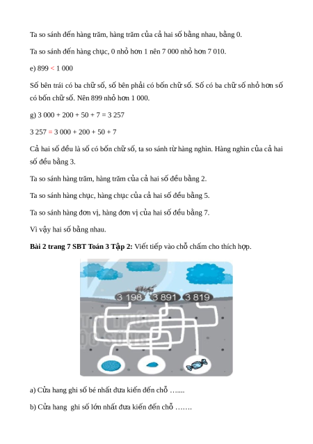 ế hàng trăm, hàng trăm c a ủ c hai ả s b ố ng ằ nhau, b ng ằ 0. Ta so sánh đ n ế hàng ch c, 0 nh ụ h ỏ n ơ 1 nên 7 000 nh h ỏ n 7 ơ 010. e) 899 < 1 000