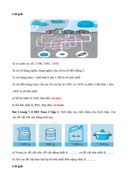 a) Số bé nhất là 3198, đ a ư đ n ế cái k o ẹ . b) Số l n ớ nh t ấ là 3891, đ a ư đ n ế cái bánh.