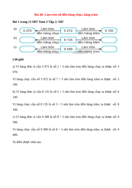 ủ số 5 072 là số 7 > 5 nên làm tròn đ n ế hàng trăm ta đư c ợ s : ố 5 100. b) Vì hàng đ n ơ vị c a