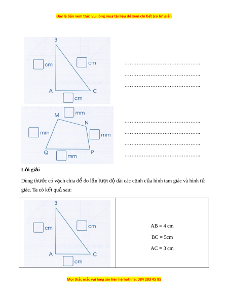 Đo đ dài m i c nh c a hình tam giác, hình t giác sau r i vi t s đo (theo m u):ộ ỗ ạ ủ ứ ồ ế ố ẫ