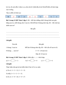ấu >, <, = thích h p. ợ a) 3 × 5 5 × 3 b) 3 × 8 3 × 9 c) 3 × 7 3 × 6 L i ờ giải Th c hi ự n t ệ ính giá tr hai ị bi u t ể h c ứ hai ở v và s ế o sánh.