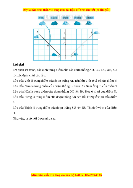 Bài 2 trang 80 SBT toán 3: Nối (theo mẫu). Vị trí l u c ề a các ủ b n: ạ Việt, Nam, Hòa, H ng, ư Th nh ị theo th t ứ ự là trung đi m ể c a ủ các đo n ạ th ng: ằ AD, BC, DC, AB, SU Mọi th c ắ m c