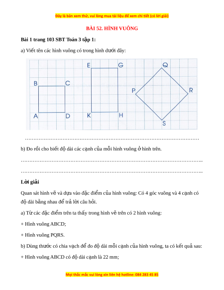 VBT Toán lớp 3 Bài 52 (Cánh diều): Hình vuông