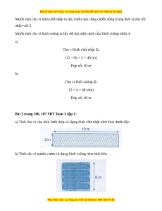 Muốn tính chu vi hình vuông ta l y đ ấ dài ộ m t ộ c nh c ạ a ủ hình vuông nhân 4. a) Chu vi hình ch nh ữ t ậ là: (12 + 8) × 2 = 40 (m) Đáp số: 40 m b) Chu vi hình vuông là: 12 × 4 = 48 (dm) Đáp số: 48 m