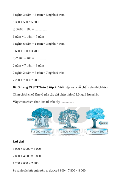 Bài 2 trang 37 SBT Toán 3 t p 2: ậ Đ t ặ tính r i ồ tính. 4 272 + 3 819 5 370 + 3 283 8 419 + 626 ……………… ……………… ……………… ……………… ……………… ……………… ……………… ……………… ……………… L i ờ giải 4 272 5 370 8 419 3 819 3 283 626 8 091 8 653 9 045