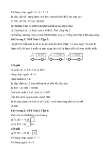 Bài 2 Trang 61 SBT Toán 3 T p 2 ậ : Vi t ế ti p vào ch ế ỗ chấm cho thích h p. ợ Số lư t ợ xem các chư ng t ơ rình truy n hì ề nh tính đ n m ế t ộ th i ờ đi m ể đư c ợ cho nh ư b ng ả dư i ớ đây: STT Tên chư ng t ơ rình Số lư t ợ xem 1 Ti ng ế Anh l p 3 ớ 73 353 2 Th công ủ l p 3 ớ 32 795 3 Ca nh c ạ thi u ế nhi 45 728 4 Kĩ năng sống 78 000 Trong các chư ng ơ trình trên: a) Chư ng ơ trình có lư t ợ xem nhi u nh ề t ấ là: b) Chư ng ơ trình có lư t ợ xem ít nh t ấ là: c) Nh ng ch ữ ư ng
