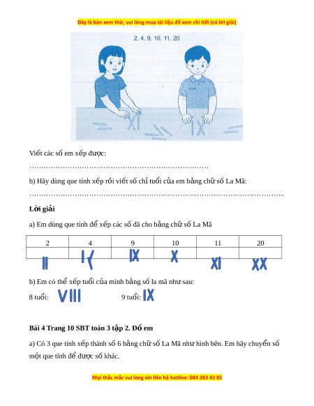b) Hãy dùng que tính x p r i vi t s ch tu i c a em b ng ch s La Mã: ế ồ ế ố ỉ ổ ủ ằ ữ ố