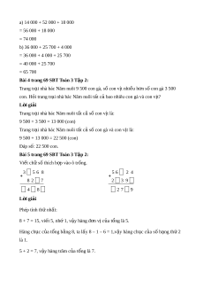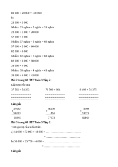Nhẩm: 35 nghìn + 3 nghìn = 38 nghìn 35 000 + 3 000 = 38 000 23 000 + 5 000 = …….. 57 000 + 3 000 = …….. 82 000 + 6 000 = …….. 39 000 + 4 000 = …….. L i ờ giải a) 50 000 + 40 000 Nhẩm: 5 ch c nghì ụ n + 4 ch c ụ nghìn = 9 ch c nghì ụ n 50 000 + 40 000 = 90 000 20 000 + 60 000 Nhẩm: 2 ch c nghì ụ n + 6 ch c ụ nghìn = 8 ch c nghì ụ n 20 000 + 60 000 = 80 000 30 000 + 70 000 Nhẩm: 3 ch c nghì ụ n + 7 ch c ụ nghìn = m t ộ trăm nghìn 30 000 + 70 000 = 100 000 80 000 + 20 000 Nhẩm: 8 ch c nghì ụ n + 2 ch c ụ nghìn = m t ộ trăm nghìn 80 000 + 20 000 = 100 000 b) 23 000 + 5 000