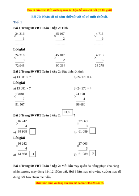 Đây là bản xem th , vu ử i lòng mua tài li u ệ đ xe ể m chi ti t ế (có l i ờ gi i ả ) Bài 70: Nhân s có ố năm ch s ữ v ố i ớ s có m ố t ộ ch s ữ . ố Ti t ế 1