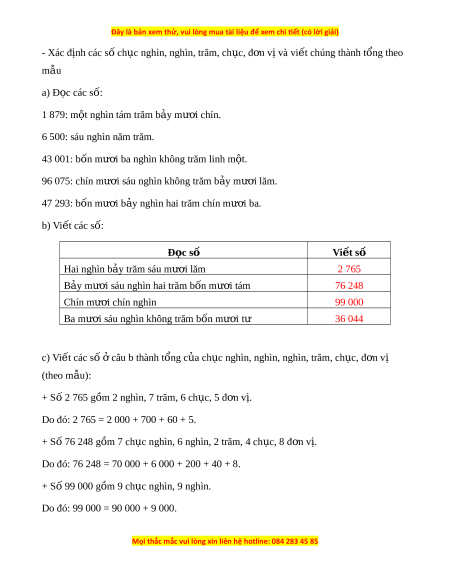 47 293: ………………………………………………………………………………….. b) Vi t ế số thích h p vào ợ ch ch ỗ m ấ : Đ c s ọ ố Vi t ế số Hai nghìn b y t ả răm sáu mư i ơ lăm B y ả mư i ơ sáu nghìn hai trăm b n m ố ư i ơ tám Chín mư i ơ chín nghìn Ba mư i
