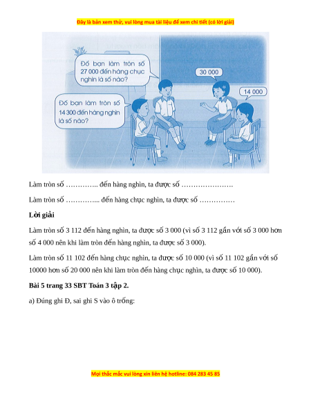 Bài 4 Trang 32 SBT Toán 3 t p 2. ậ Th c hành:ự Làm tròn s đ n hàng nghìn, hàng ố ế