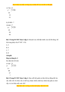 ư rong phép chia 97 687 : 8 là: A. 5 B. 6 C. 7 D. 8 L i ờ giải Đáp án đúng là: C Em đ t ặ tính r i ồ tính 97 687 8 17 12 210 1 6 08 07 7