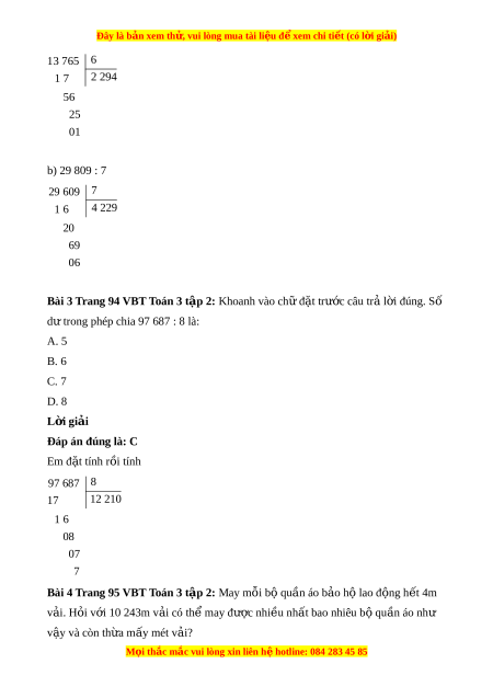 Đây là bản xem th , vu ử i lòng mua tài li u ệ đ xe ể m chi ti t ế (có l i ờ gi i ả ) 13 765 6 1 7 2 294 56 25 01 b) 29 809 : 7 29 609 7 1 6 4 229 20 69 06