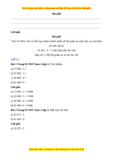 Bài 4 Trang 95 VBT Toán 3 tập 2: May mỗi b qu ộ ần áo b o ả h l ộ ao đ ng h ộ t ế 4m v i ả . H i ỏ v i ớ 10 243m v i ả có th m ể ay đư c nhi ợ u nh ề t ấ bao nhiêu b qu ộ n áo ầ nh ư v y ậ và còn th a m ừ ấy mét v i ả ? M i ọ thắc m c