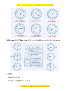 Do đó đồng hồ chỉ 2 gi 7 phút ờ . * Th c ự hiện xem giờ tư ng t ơ v ự i ớ các đ ng h ồ còn l ồ i ạ . V y ậ ta nối nh s ư au: