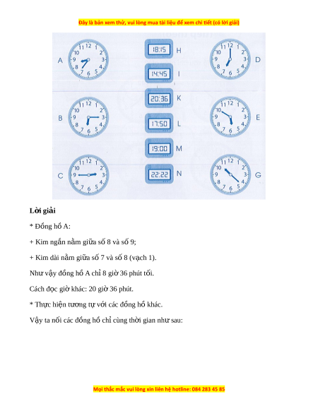 L i ờ giải * Đồng hồ A: + Kim ng n ắ n m ằ gi a s ữ 8 và ố s 9; ố + Kim dài n m ằ gi a s ữ 7 và s ố 8 ( ố v ch ạ 1). Như v y đ ậ