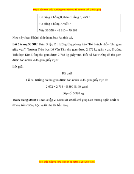 Bài 5 trang 50 SBT Toán 3 t p 2. ậ H ng ng phong trào “K ho ch nh - Thu gomướ ứ ế ạ ỏ