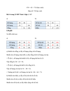 …………………………………………………………………………………………… L i ờ giải Tóm t t ắ Bài gi i ả Trư ng ờ Ti u ể h c N ọ guy n H ễ u có s ệ ố h c ọ sinh là: 674 + 45 = 719 (h c ọ sinh) Đáp số: 719 h c s ọ inh