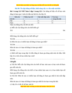 Bài 1 trang 122 VBT Toán 3 t p 2 trang 122: ậ Cho b ng s li u v s h c sinhả ố ệ ề ố ọ