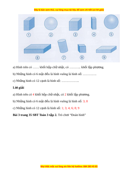 ề à hình vuông là hình s : ố 3; 8 c) Nh ng hì ữ nh có 12 c nh l ạ à hình s : ố 1; 3; 4; 6; 8; 9