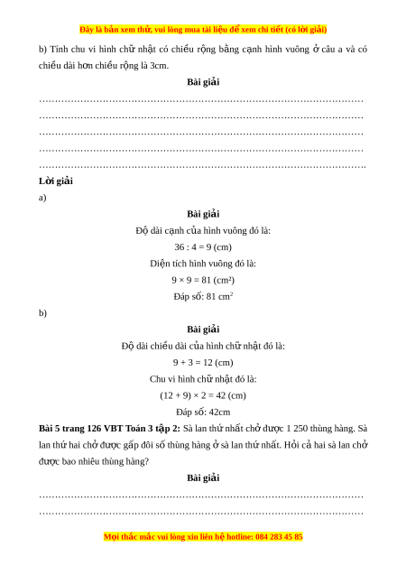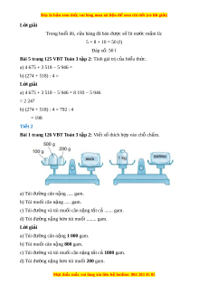 Đây là bản xem th , vu ử i lòng mua tài li u ệ đ xe ể m chi ti t ế (có l i ờ gi i ả ) L i ờ giải Trong buổi đó, c a ử hàng đã bán đư c ợ số lít nư c m ớ m ắ là: 5 × 8 + 10 = 50 (l) Đáp số: 50 l