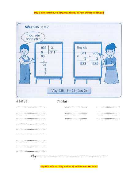 ………………………………. b) Th c hi ự n các phép ệ chia rồi th l ử i ạ (theo m u ẫ ):