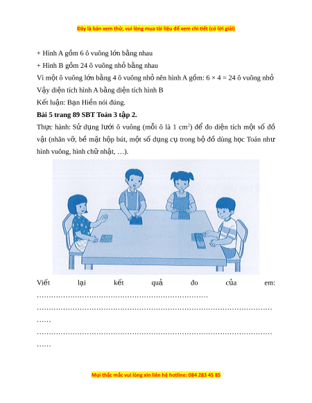 ỗ ô là 1 cm2) để đo di n ệ tích m t ộ số đồ v t ậ (nhãn v , ỡ bề m t ặ h p ộ bút, m t ộ số d ng ụ cụ trong b ộ đồ dùng h c ọ Toán như hình vuông, hình ch nh ữ t ậ , …). Vi t ế l i ạ k t ế quả đo c a ủ em: