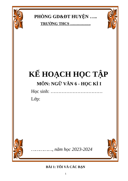 MÔN: NGỮ VĂN 6 - HỌC KÌ I