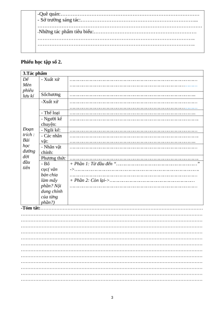 Phiếu học tập số 2. 3.Tác phẩm Dế - Xuất xứ