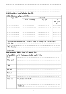 - Nhận xét về nhân vật Dế Mèn( Dế Mèn có những nét nào đẹp? Nét nào chưa đẹp?)
