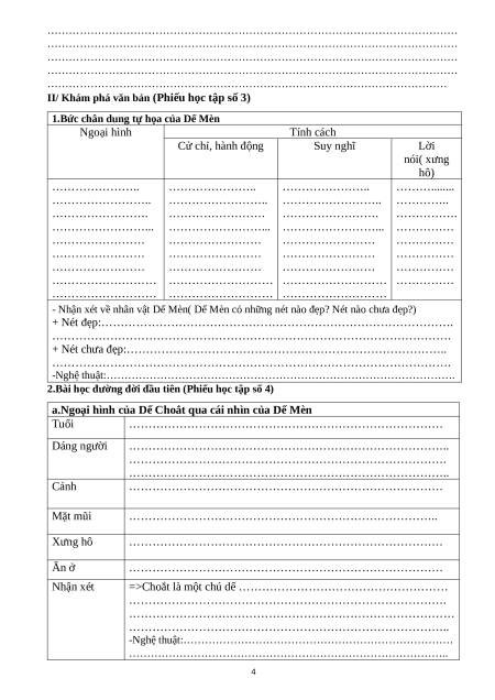 1.Bức chân dung tự họa của Dế Mèn Ngoại hình Tính cách Cử chỉ, hành động Suy nghĩ Lời nói( xưng hô) ………………….. ………………….. ………………….. ………........ …………………….. …………………….. …………………….. ………….. ……………………. ……………………. ……………………. ……………. ……………………...