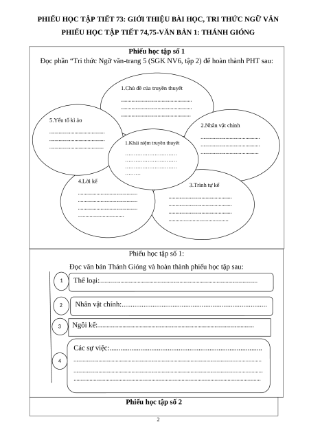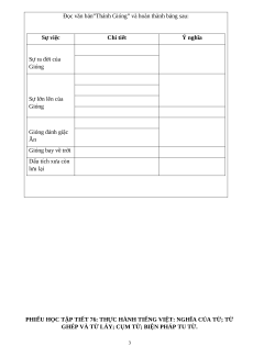 PHIẾU HỌC TẬP TIẾT 74,75-VĂN BẢN 1: THÁNH GIÓNG