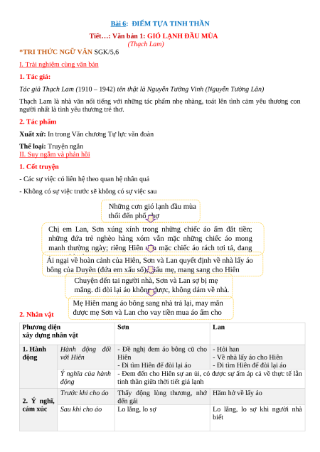 Tiết…: Văn bản 1: GIÓ LẠNH ĐẦU MÙA (Thạch Lam)
