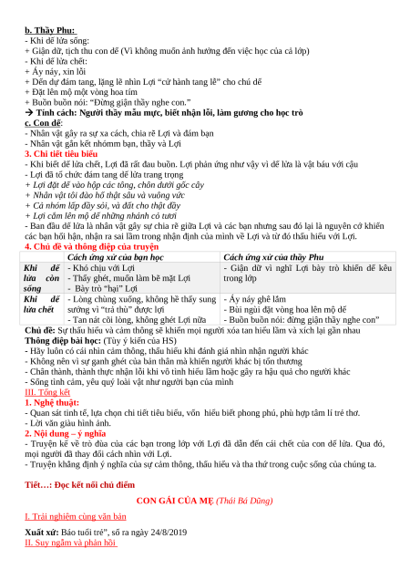 - Nhân vật gắn kết nhómm bạn, thầy và Lợi 3. Chi tiết tiêu biểu
