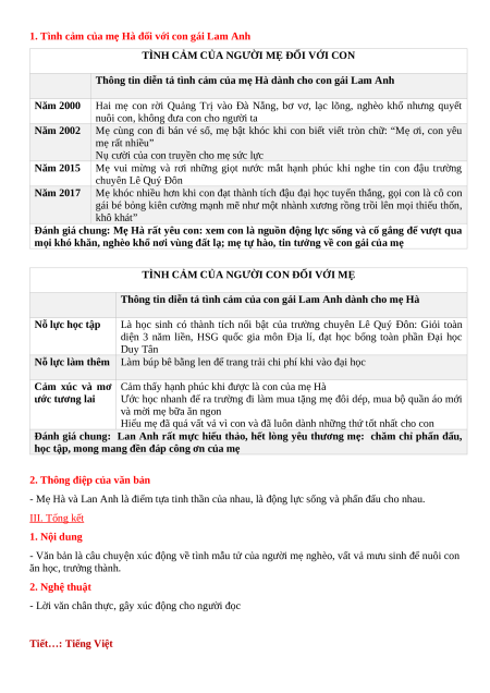 - Luôn biết cảm, thấu hiểu và rộng lòng tha thứ cho người khác III. Tổng kết 1. Nghệ thuật