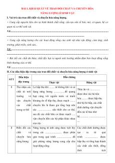 BÀI 1. KHÁI QUÁT VỀ TRAO ĐỔI CHẤT VÀ CHUYỂN HÓA NĂNG LƯỢNG Ở SINH VẬT